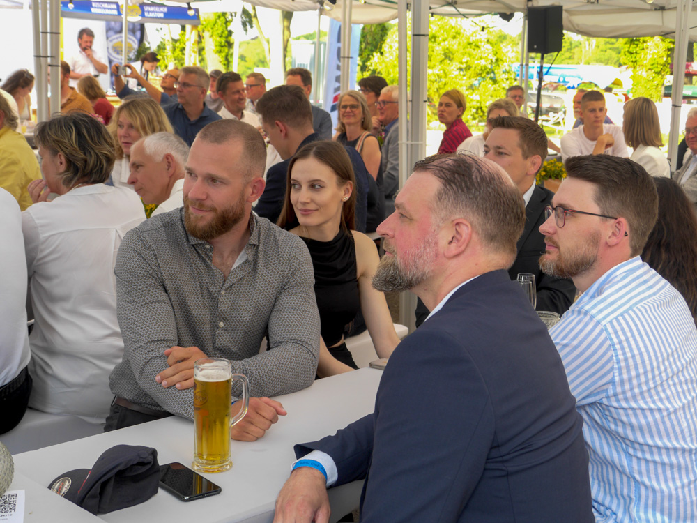 Das Sommerfest bildete hierfür den idealen Rahmen. Trotz eines kräftigen Gewitterschauers am Nachmittag, der den Aufbau ein wenig verzögerte, konnten Sponsoren, Freunde und Förderer des KC Potsdam sowie zahlreiche Ehrengäste am Abend bei schönstem Sonnenschein und angenehmen Temperaturen die qualifizierten Athletinnen und Athleten sowie deren Trainerinnen und Trainer auf ihrem Weg zu den Welt- und Europameisterschaften der Junioren und U23 in Brastislava bzw. Plovdiv, den Weltmeisterschaften der Leistungsklasse im usbekischen Sarmakand, sowie dem sportlichen Höhepunkt des 2024, den Olympischen Spielen in Paris verabschiedet und ihnen die besten Wünsche mitgegeben werden.