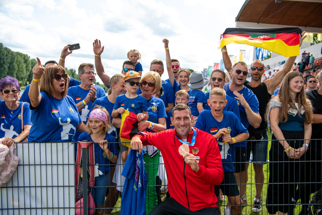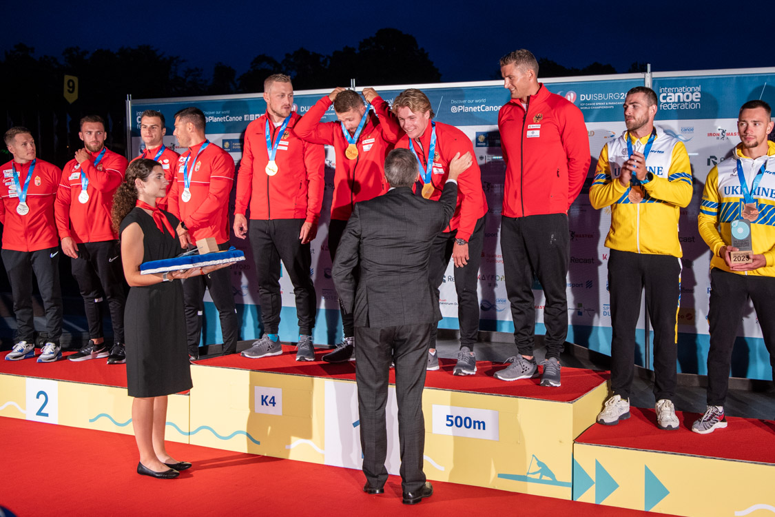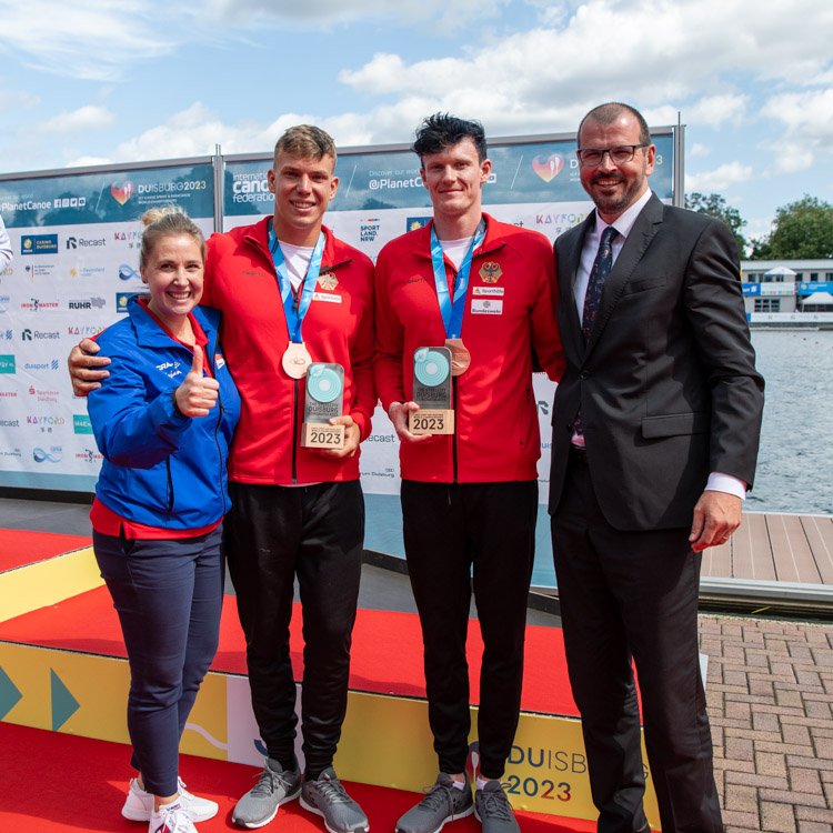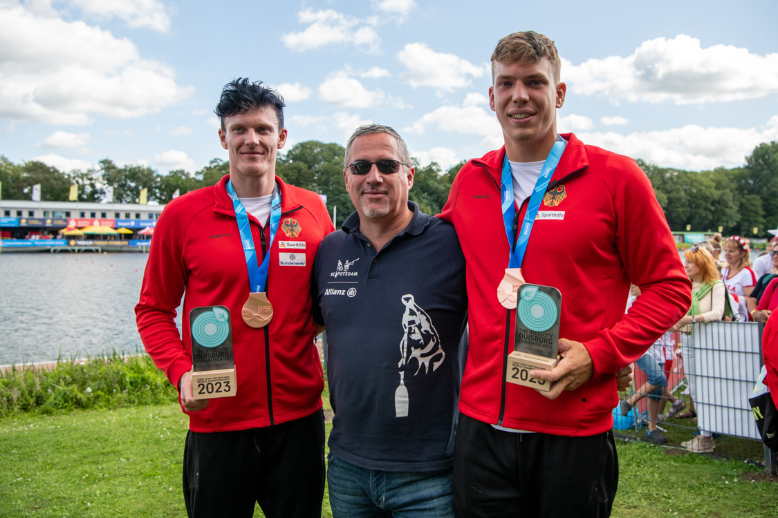 Die beiden WM-Debütanten Anton Winkelmann und Leonard Busch zeigten in ihrem K2-Rennen über 1000 m einen couragierten Auftritt und wurden zur Freude der mitgereisten Familien am Ende mit der Bronzemedaille belohnt. Antje Winkelmann konnte in eine deutsche Fahne gehüllt vor Nervosität das Rennen kaum erwarten, am Ende waren sie und Gatte Ernst August mächtige stolz auf ihren 20-jährigen Sohnemann. Die Heidelbeeren ihres Spargelhofs im Deutschen Haus an der Regattastrecke haben dabei vielleicht den Unterschied ausgemacht. Brandenburgs Minister für Bildung, Jugend und Sport Steffen Freiberg ließ es sich nehmen die Siegerehrung für dieses Rennen vorzunehmen.