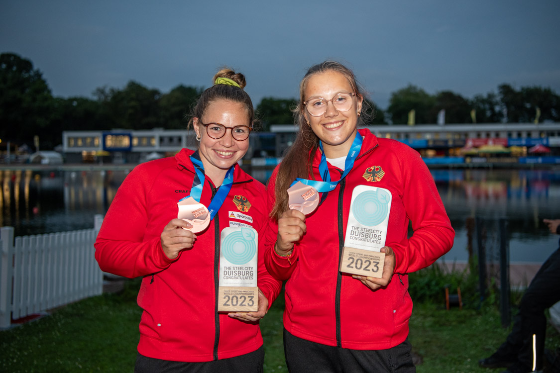 Einen gelungenes WM-Debüt erlebte auch die 17-jähirge Hedi Kliemke. Im C2 über 200 m sicherte sich die Sportschülerin mit ihrer Berliner Partnerin Lisa Jahn die Bronzemedaille. Das Hauptaugenmerk des neuformierten Zweiercanadiers lag jedoch auf der olympischen 500m-Strecke. Dort erreichte das Duo hinter den Booten aus China, Spanien und Kanada einen hervorragenden vierten Platz und sicherte dem DKV ebenfalls zwei Quotenplätze für Paris 2024. Zum Abschluss gewann Hedi mit Annika Loske und Ophelia Preller sowie Lisa Jahn im Vierercanadier über 500 m hinter dem Boot aus China die Silbermedaille. Dies war die erste WM-Medaille für den DKV in dieser Bootsklasse im Erwachsenenbereich