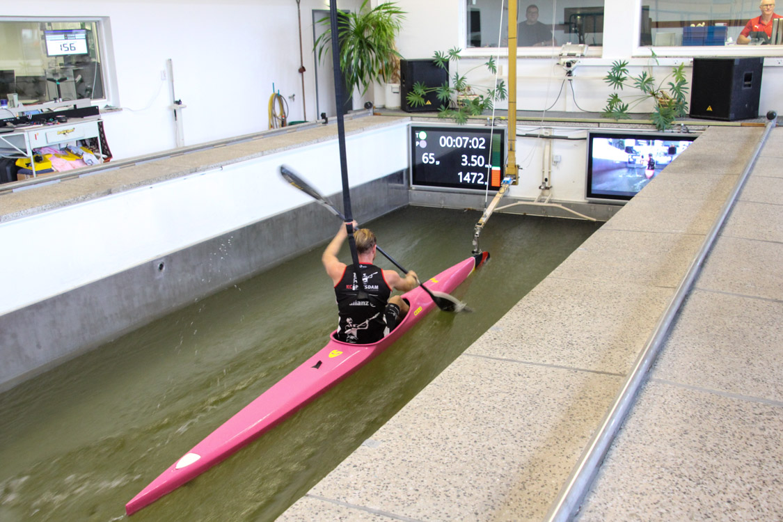 Um einen Einblick in den Trainingsalltag und das Geheimnis des Erfolgs sowohl der Potsdamer als auch der Deutschen Kanutinnen und Kanuten insgesamt zu bekommen, besichtigte Jens Riemer die Kanugegenstromanlage im Standort Potsdam des Olympiastützpunktes Brandenburg. In dieser seit 1983 genutzten, weltweit einmaligen Anlage können die Kanutinnen und Kanuten auch im Winter unter optimalen Bedingungen trainieren und in regelmäßigen Abständen Leistungstest durchführen, um ihren Trainingsfortschritt zu beurteilen.