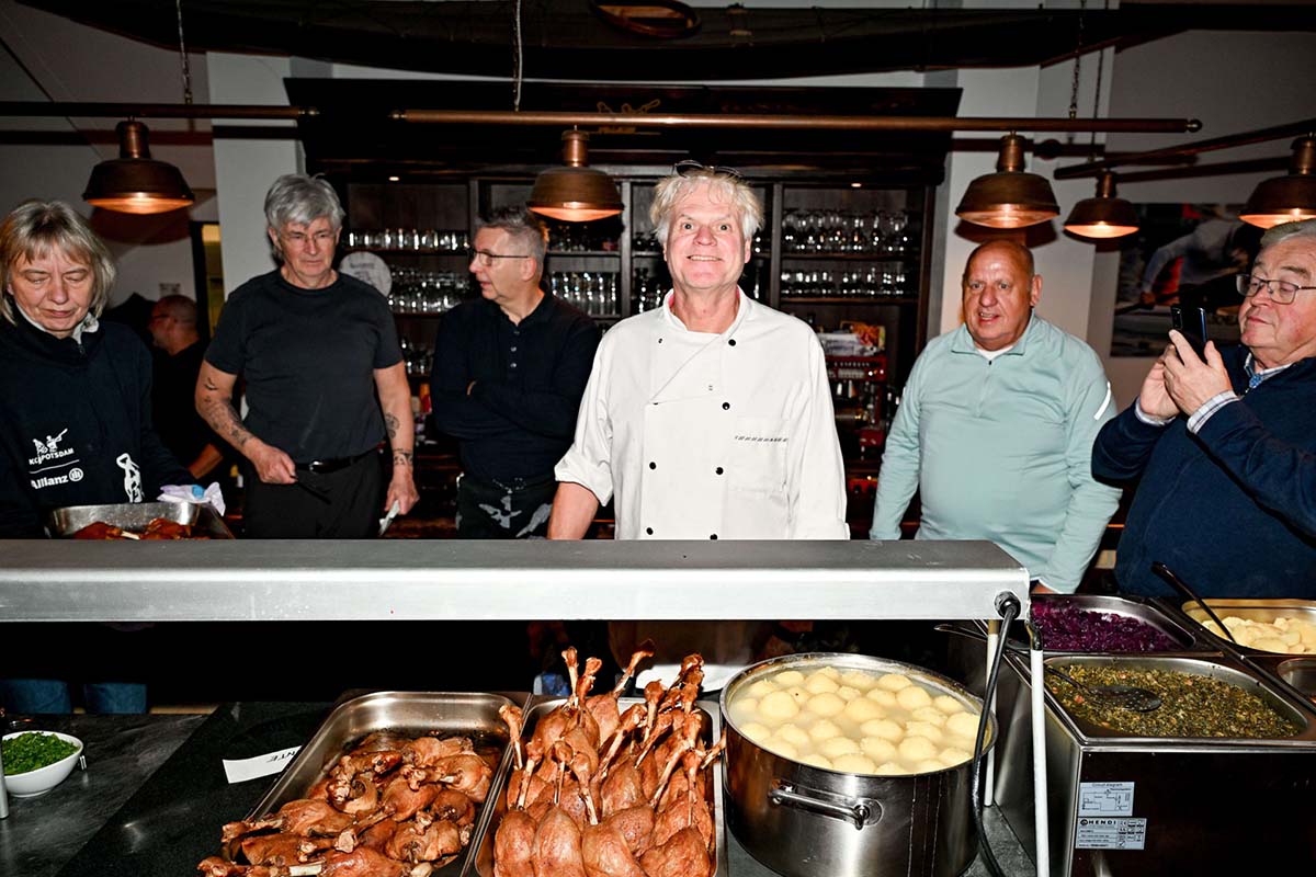 Die Beteiligung an dieser außergewöhnlichen Paddeltour war zwar bisher immer recht gut, doch noch nie so groß wie dieses Mal. 38 Sponsoren und Förderer meldeten sich an und wurden in zwei Zwanziger-Canadier aufgeteilt. Wetter, Wind und Temperaturen waren super und die Stimmung in der Dunkelheit auf dem Wasser wie im Hochsommer. Vielleicht spielte auch die Vorfreude mit auf den anschließenden Gänsebraten und die aufwärmenden Getränke in der "Kanuscheune". Peter Krafft hatte dabei wieder eine glückliche Hand und hat gemeinsam mit Beate etwas Leckeres gezaubert. Auch unser langjähriger Sponsor Frank Fahland überraschte wieder alle mit Weihnachtsgebäck und Canadier-Stollen. Dafür vielen Dank!