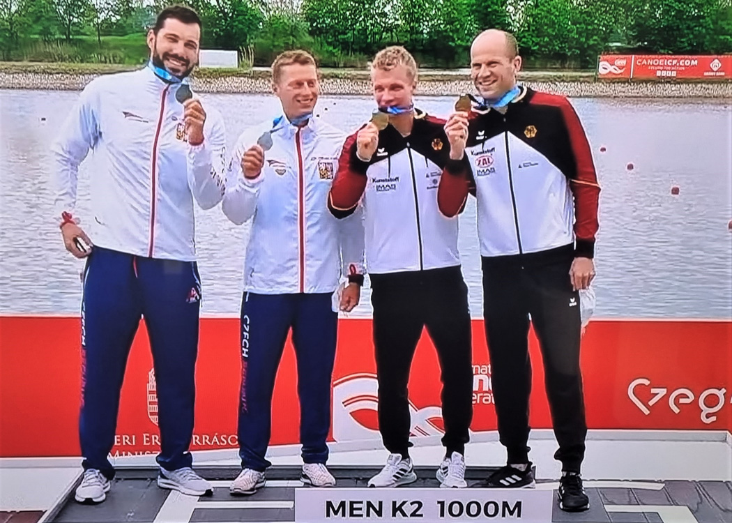 Die deutsche Silbermedaille in Szeged erkämpfte sich der Kajak-Vierer der Herren über 500 m mit 65 Hundertstelsekunden Rückstand auf das starke spanische Quartett. Diese Bootsbesatzung des DKV mit den beiden Potsdamern Ronald Rauhe und Max Lemke sowie dem Dresdner Tom Liebscher und dem Essener Max Rendschmidt wird damit auch die deutschen Farben in Tokio vertreten.