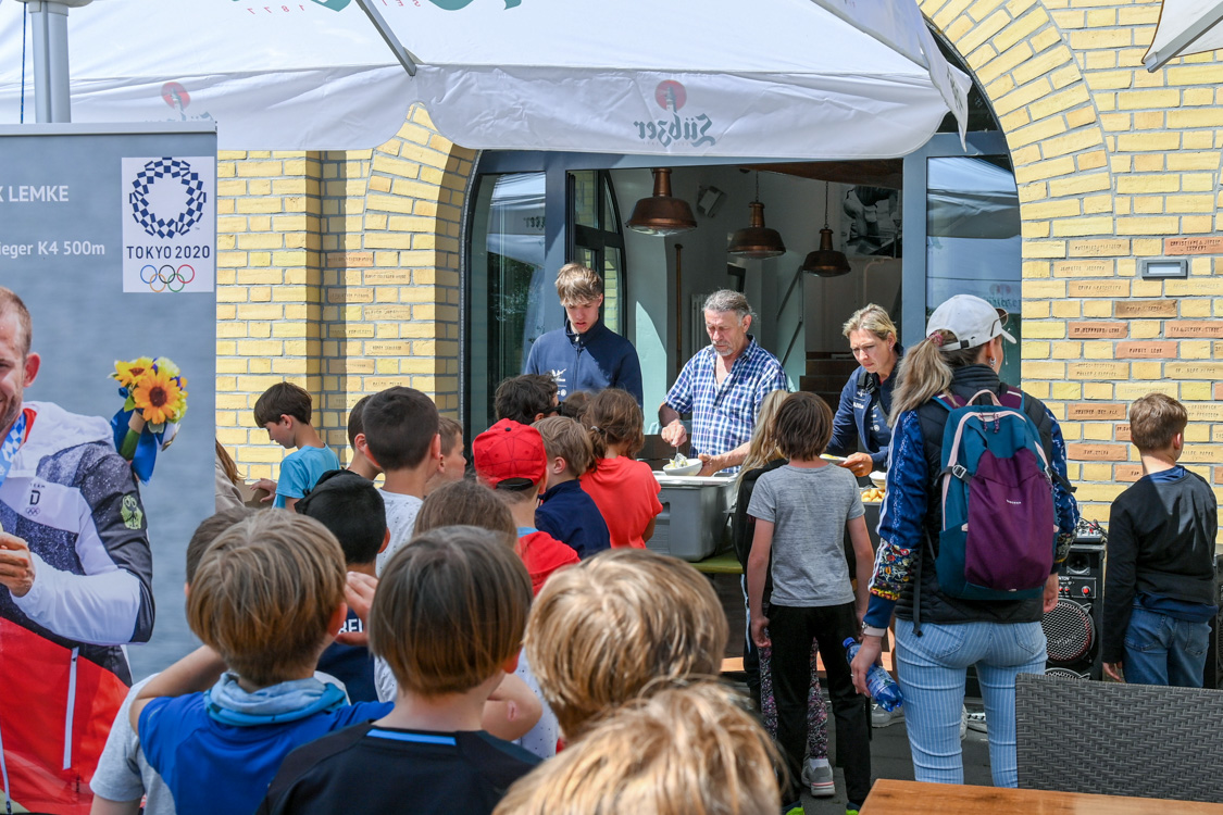 Sogar unser mit einer Silbermedaille von Olympia in Tokio erfolgreich zurückgekehrter Jacob Schopf war beim sportlichen Fest dabei. Er hat gerne Fragen beantwortet - zu Olympia, zu seinem Erfolgsrezept oder was sonst noch wissenswert war – und ist selbst mit ins Boot gestiegen und hat wertvolle Tipps gegeben. Große und kleine Kinder konnten bei einem Tag voller Spiel und Spaß den Kanurennsport kennenlernen und ihr Talent testen.