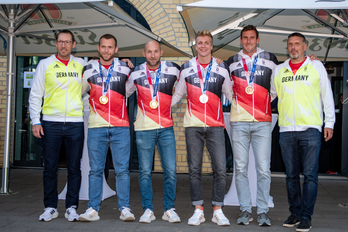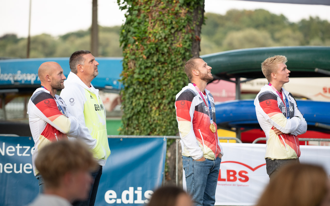 Das setzte sich während der Festveranstaltung des Kanu-Clubs Potsdam im OSC anlässlich seines 60-jährigen Bestehens am 20.08. im Sportpark Luftschiffhafen fort. Hier empfingen und beglückwünschten nicht nur Vorstand und Vereinsmitglieder des KC Potsdam die olympischen Medaillengewinner von Tokio 2021