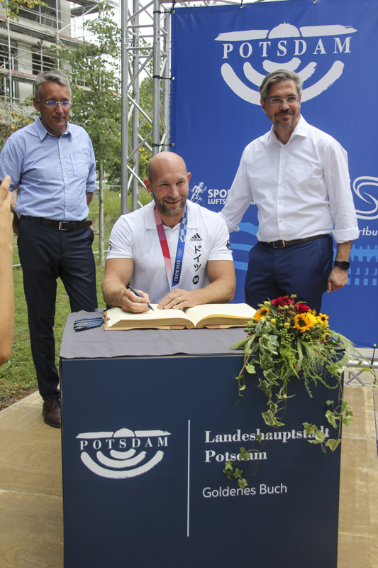 Neben den Kanu-Rennsportlern vom KC Potsdam mit ihren Trainern u.a. auch die Silbermedaillengewinnerin im Diskuswurf Kristin Pudenz vom SC Potsdam, denen alle die Ehre zuteilwurde, sich in das Goldene Buch der Stadt Potsdam einzutragen. Zudem wurden feierlich die neuen Stelen für die „Allee des Ruhms“ mit den Namen der Potsdamer Medaillengewinner bei Olympia 2021 enthüllt.