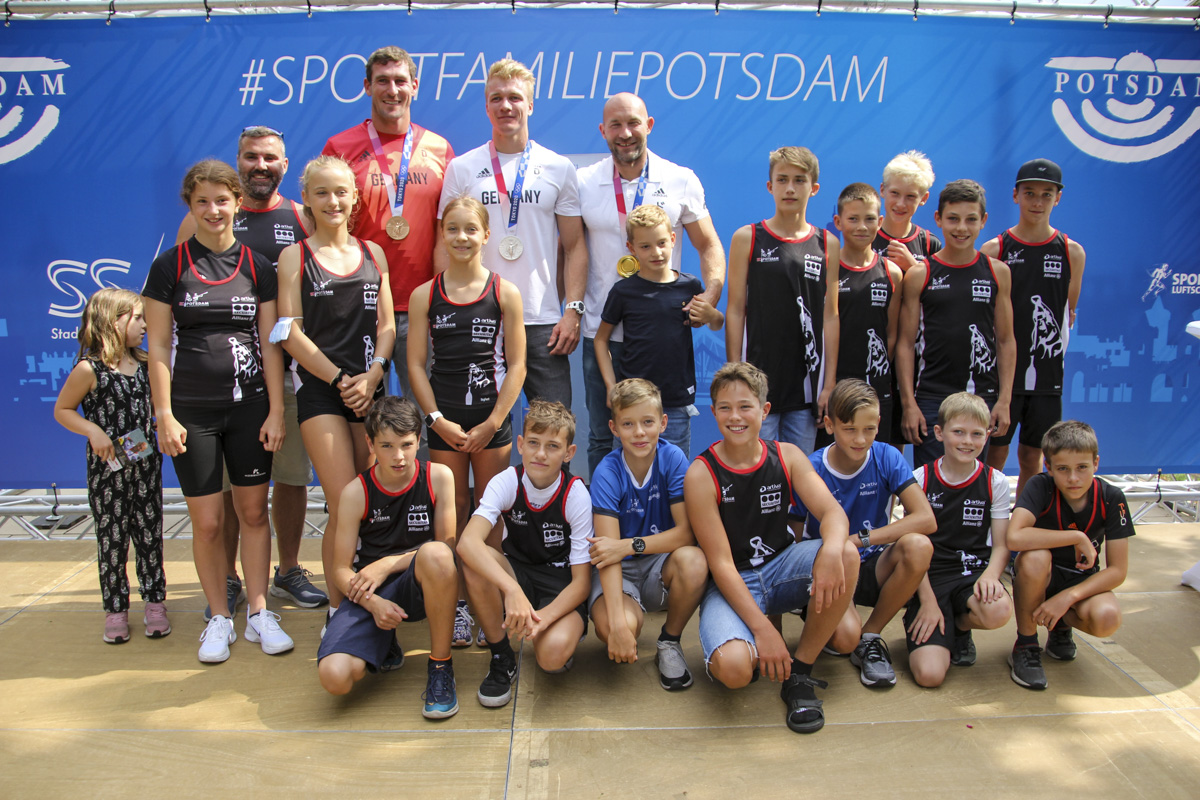 Bereits auf dem Flughafen Berlin-Schönefeld schlug am Abend des 09.08. den von den Olympischen Spielen zurückgekehrten vier Brandenburger Rennkanuten und ihren Trainern eine herzliche Welle der Sympathie entgegen, als die Delegation mit den 2021 aufgenommenen Potsdamer Kanu-Sportschüler/-innen ihre Vorbilder mit selbstgebastelten Transparenten stimmgewaltig begrüßten.