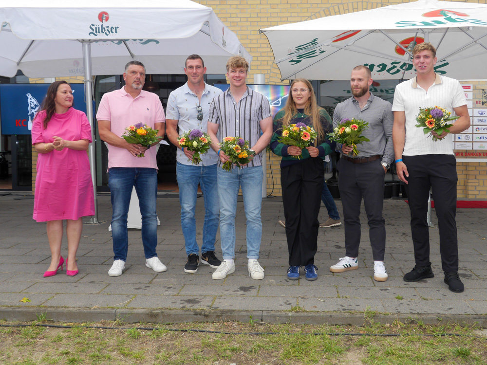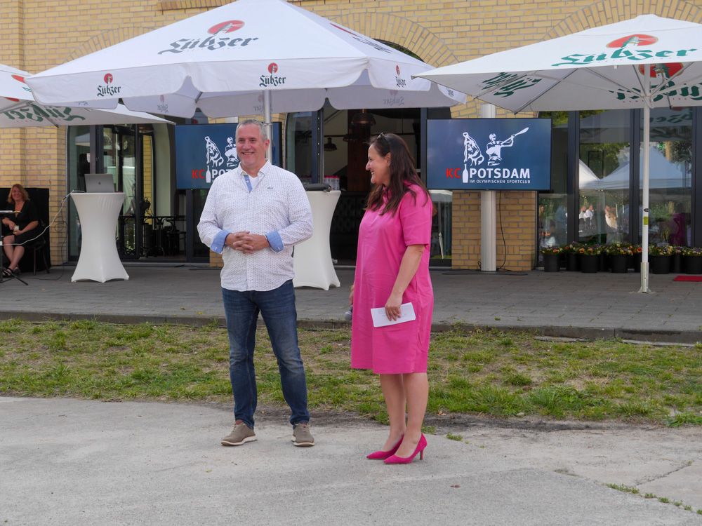Das Sommerfest bildete hierfür den idealen Rahmen. Trotz eines kräftigen Gewitterschauers am Nachmittag, der den Aufbau ein wenig verzögerte, konnten Sponsoren, Freunde und Förderer des KC Potsdam sowie zahlreiche Ehrengäste am Abend bei schönstem Sonnenschein und angenehmen Temperaturen die qualifizierten Athletinnen und Athleten sowie deren Trainerinnen und Trainer auf ihrem Weg zu den Welt- und Europameisterschaften der Junioren und U23 in Brastislava bzw. Plovdiv, den Weltmeisterschaften der Leistungsklasse im usbekischen Sarmakand, sowie dem sportlichen Höhepunkt des 2024, den Olympischen Spielen in Paris verabschiedet und ihnen die besten Wünsche mitgegeben werden.