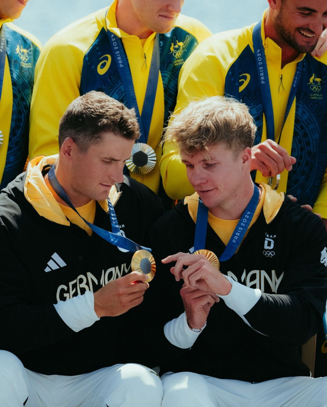 Die beiden Kajakfahrer starten in der französischen Hauptstadt über die 500m-Strecke im Zweierkajak sowie mit Schlagmann Max Rendschmidt (KG Essen) und Tom Liescher-Lucz (KC Dresden) im Viererkajak. Mit diesem gewannen sie in der vergangenen Saison zur Weltmeisterschaft in Duisburg die Goldmedaille und gehörten somit auch in Paris zu den Goldfavoriten, zumal die diesjährigen Weltcups in Szeged und Poznan ebenfalls gewonnen werden konnten. Im Finale am letzten Donnerstag musste sich das Paradeboot des Deutschen Kanu-Verbandes nach einem guten Start und einem starken Mittelstück, in dem Bootsspitze in Führung geschoben werden konnte, am Ende dem Angriff des australischen Bootes erwehren. Am Ende wurde es auf der Ziellinie knapp, die vier Modellathleten behaupteten sich jedoch mit der Winzigkeit von 4/100-Sekunden gegen ihre Kontrahenten.