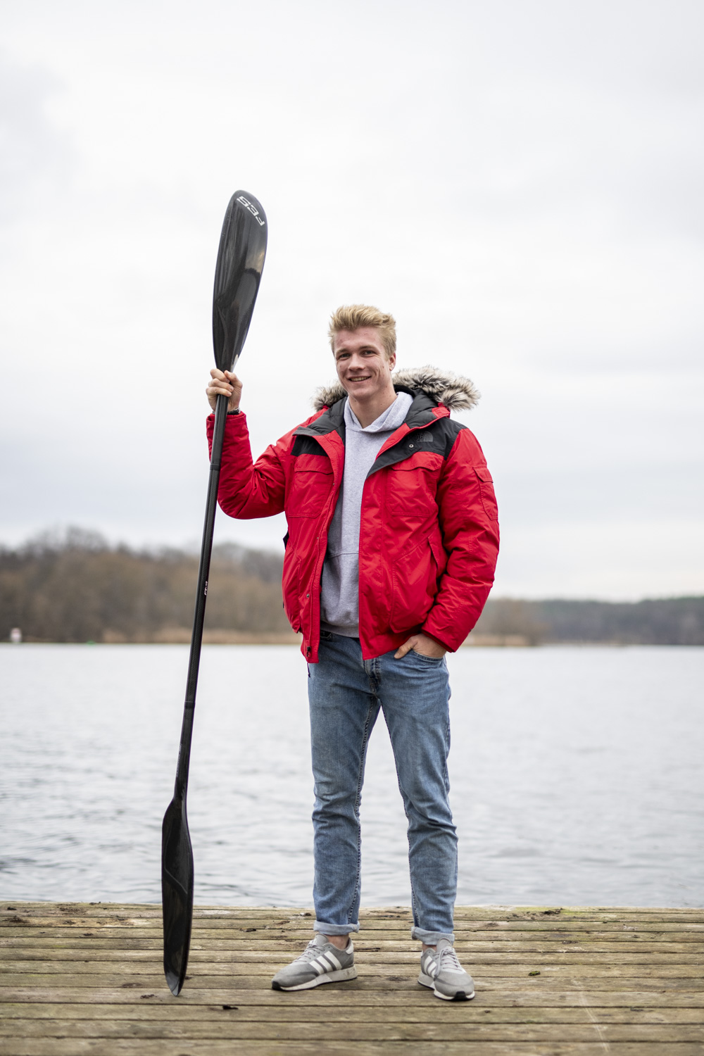 Jeans mit aufgeschlagenem Saum, graues Sweatshirt, Turnschuhe – Jacob Schopf gibt sich leger, aber aufgeweckt auch nach einer harten Trainingseinheit. Sein zu Jahresbeginn verkündeter Wechsel vom Köpenicker Kanusportclub zum KC Potsdam schlug Wellen. Denn der 20-Jährige gilt als das größte Talent im Deutschen Kanu-Verband (DKV). Mit dem bereits 37 Jahre alten Olympiasieger Max Hoff (Essen) wurde er im August 2019 in überlegener Manier Weltmeister im Kajak-Zweier über 1000 Meter. Das „Generationenboot“ gilt als große olympische Gold-Hoffnung für Tokio im Juli dieses Jahres.