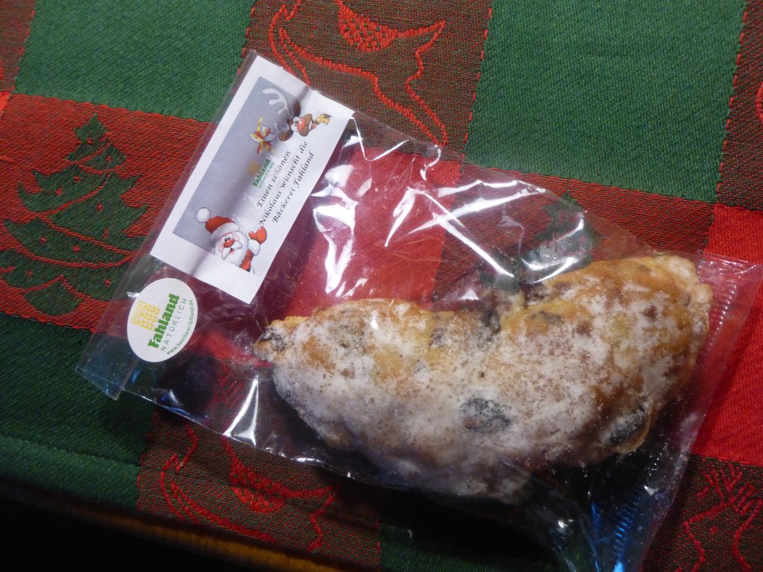 Wieder an Land ging es dann in die "Kanuscheune" zu Peter Krafft und seiner Frau Beate, die wieder ein leckeres Nikolausessen vorbereitet hatten. Aber auch unser Paddelfreund Frank Fahland hatte wieder viele Leckereien aus seiner Backstube mitgebracht. Die Überraschung war ein weihnachtlicher Kanustollen für jeden, eine Nachbildung des Kanubrotes nur aus Stollenteig.