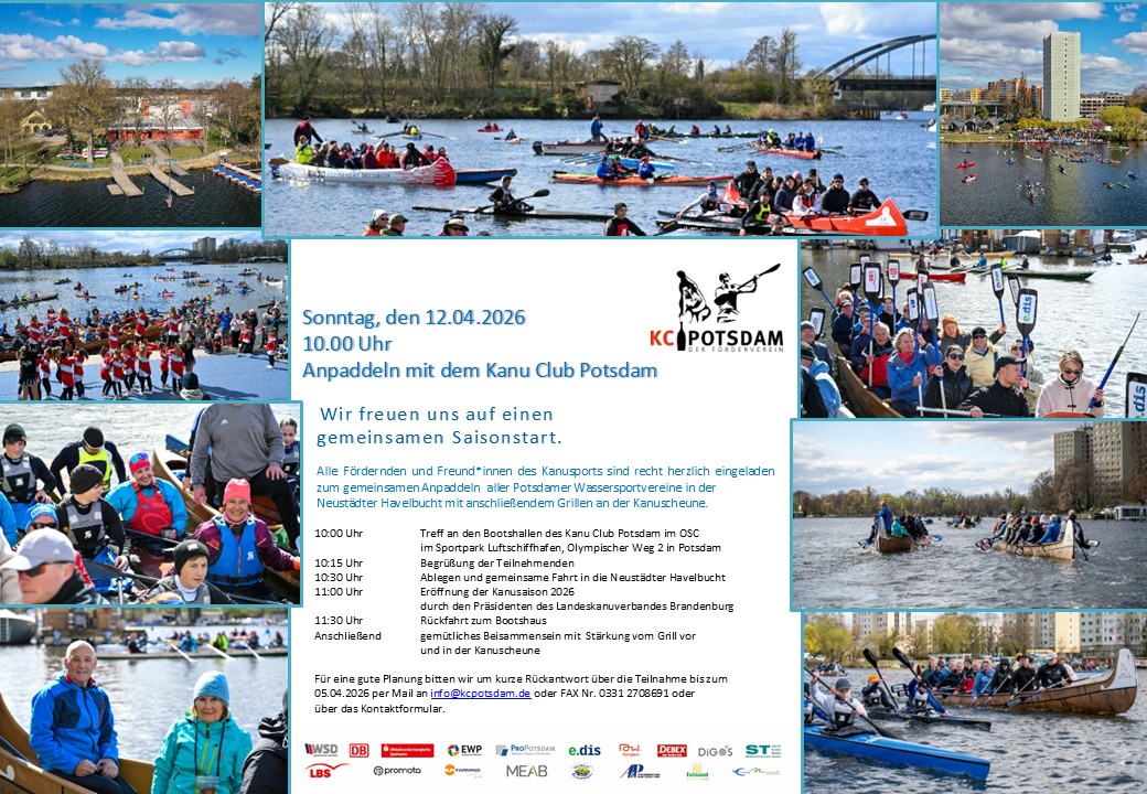 Nachdem schon im vergangenen Jahr die traditionelle Saisoneröffnung des Landes-Kanuverbandes Brandenburg wieder mit einer Vielzahl von Gästen stattfinden konnte, freuen wir uns auch in diesem Jahr, dass es am 12. April 2026 wieder soweit ist: mit dem Anpaddeln starten wir offiziell in die Kanusaison 2026!